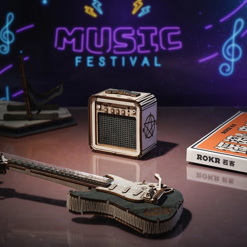 Rinkinyje yra 140 detalių su žemu sudėtingumu, todėl puikiai tinka pradedantiesiems ir vyresniems vaikams. Dėl aiškios instrukcijos gitarą surinksite maždaug per 1,5 val. Galutinis rezultatas – realistinis elektrinės gitaros su stiprintuvu modelis, puiki dovana muzikos entuziastams.