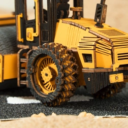 Šis kūrybinis konstravimo rinkinys įtraukia į statybinės technikos pasaulį. Medinis kelio volo modelis siūlo autentišką išvaizdą ir funkcinius elementus, todėl tampa ne tik puošnia dekoracija, bet ir pilnaverčiu žaislu. Dalys tiksliai išpjaunamos lazeriu ir sklandžiai susijungia tarpusavyje.