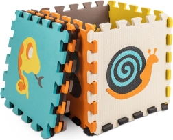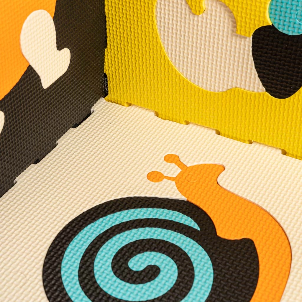 Šis didelis putų kilimėlis susideda iš 9 dalių, kurių kiekvienos matmenys 30 × 30 × 1 cm, ir kurios lengvai susijungia tarpusavyje. Kontrastingos spalvos ir mieli gyvūnų motyvai patraukia vaikų dėmesį ir skatina regos bei lytėjimo pojūčius. Išimami centriniai elementai veikia kaip paprastas rūšiuoklis – vaikai mokosi atpažinti formas ir pritaikyti jas tinkamoje vietoje.