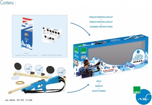 Atraskite biatlono žavesį su Martino Fourcade'o biatlono šautuvu. Šis žaislas sukurtas taip, kad sužavėtų jaunuosius sportininkus, nebijančius šalčio ir sniego. Biatlonas Lietuvoje populiarus kaip ir kitos žiemos sporto šakos, o ši mažo kalibro imitacija suteikia unikalią galimybę lavintis mažiesiems šio sporto gerbėjams.