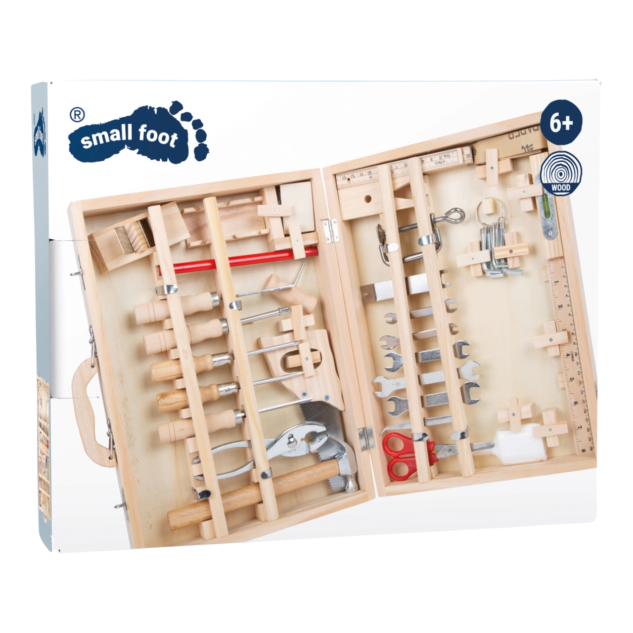Praktiškas ir tvirtas Deluxe įrankių lagaminėlis iš small foot idealiai tinka vaikams, kurie mėgsta tyrinėti taisymų ir kūrybos pasaulį. Visi įrankiai turi jiems skirtas vietas ir yra pritvirtinti, kad liktų savo vietoje net nešiojant. Aukštos kokybės apdirbimas iš medžio, metalo ir plastiko užtikrina ilgą tarnavimo laiką ir autentišką darbo su įrankiais pojūtį.