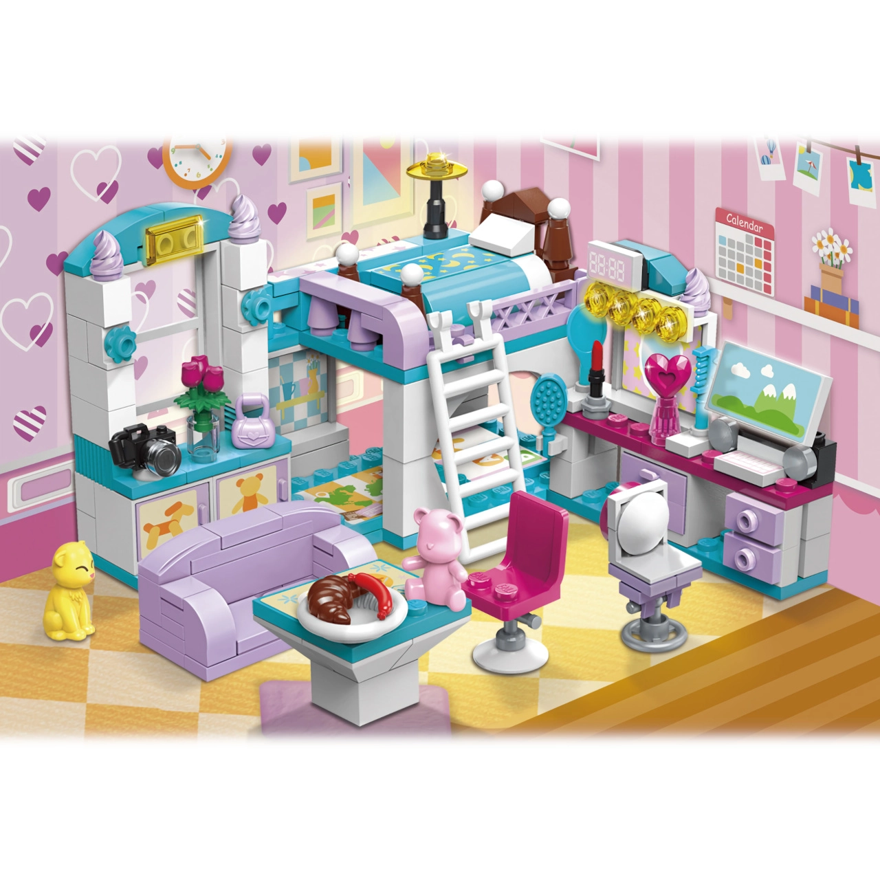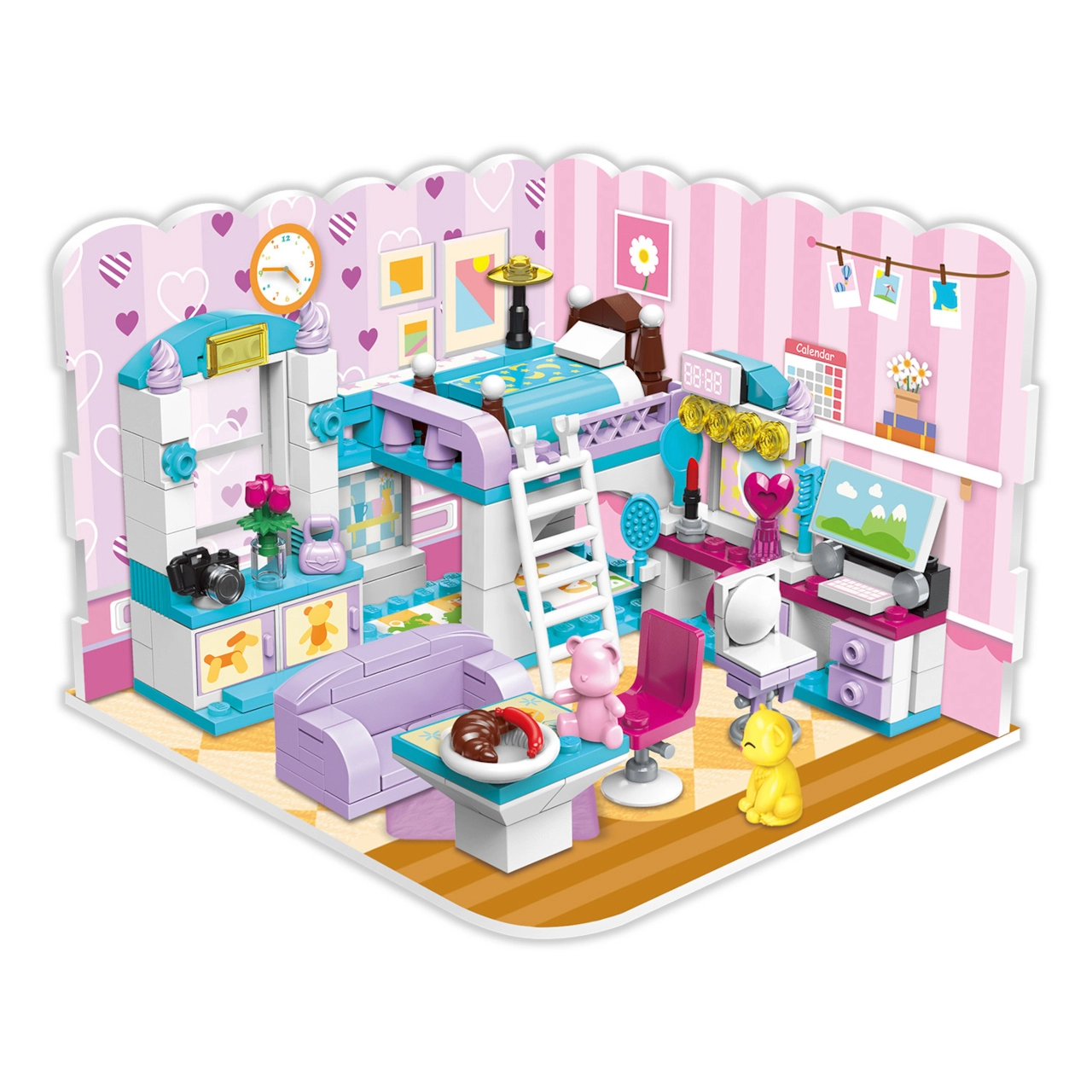 QMAN Mergaitės kambarys 3-in-1 konstruktorius suteikia vaikams begalę statymo ir istorijų kūrimo galimybių. Iš vieno rinkinio sukursite pilną kambarį su dviaukšte lova, rašomuoju stalu ir dekoracijomis arba perstatysite į jaukią svetainę ar valgomąjį. Ryškios spalvos ir detalūs priedai įkvepia ilgam, kūrybiškam žaidimui.