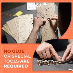 Surinkimas tikslus ir įtraukiantis dėl 400 tiksliai išpjautų detalių ir išsamaus vadovo. Modelis suteikia modulinio sujungimo galimybę – sujunkite dvi iki keturių trasų ir sukurkite sinchronizuotą mechaninę sistemą, kupiną dinamikos ir varžybų su draugais.