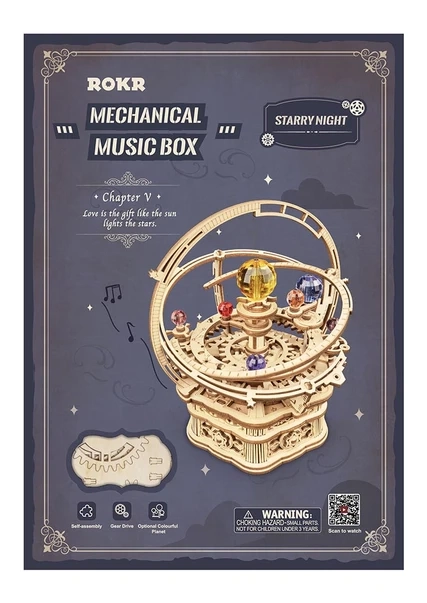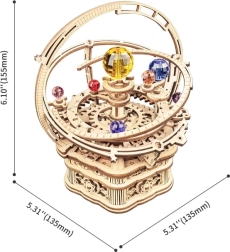 Atraskite judančio Saulės sistemos modelio žavesį: ROKR 3D medinė dėlionė „Žvaigždėta naktis“ – elegantiškas mechaninis planetariumas su muzikine dėžute. Skambant melodijai Memory (CATS) spalvingos planetos aplink „Saulę“ natūraliai sukasi. Lazeriu išpjautos liepos faneros detalės užtikrina precizišką kokybę, konstravimas lavina techninį mąstymą, kantrybę ir smulkiąją motoriką. Puikus edukacinis ir dekoratyvus interjero akcentas bei išskirtinė dovana vaikams ir suaugusiesiems.