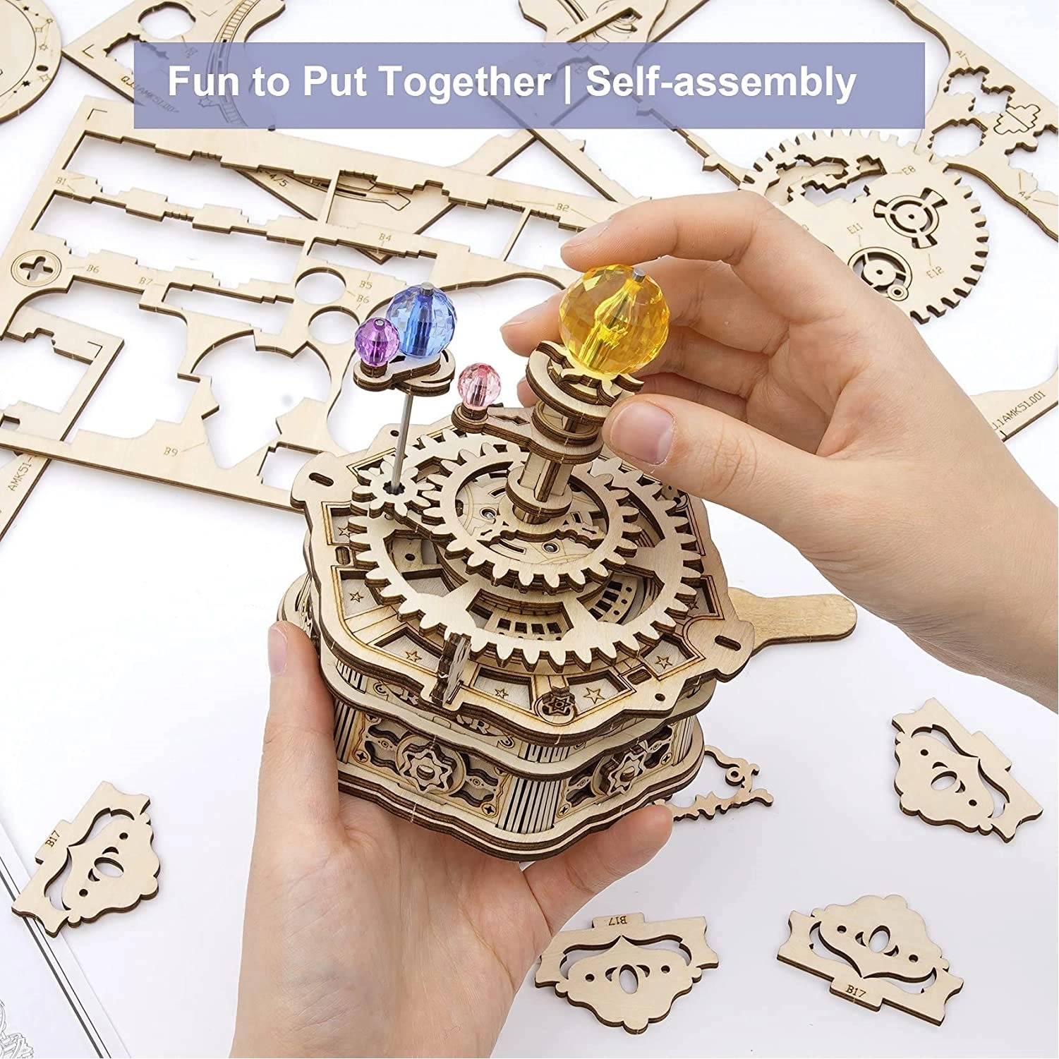 Rokr 3D mediniai dėlionės „Žvaigždėta naktis“ – mechaninis planetariumas su muzikine dėžute