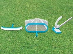 Rinkinyje yra sietelis, siurblys ir šepetys, kurie patenkina visus baseino valymo poreikius.