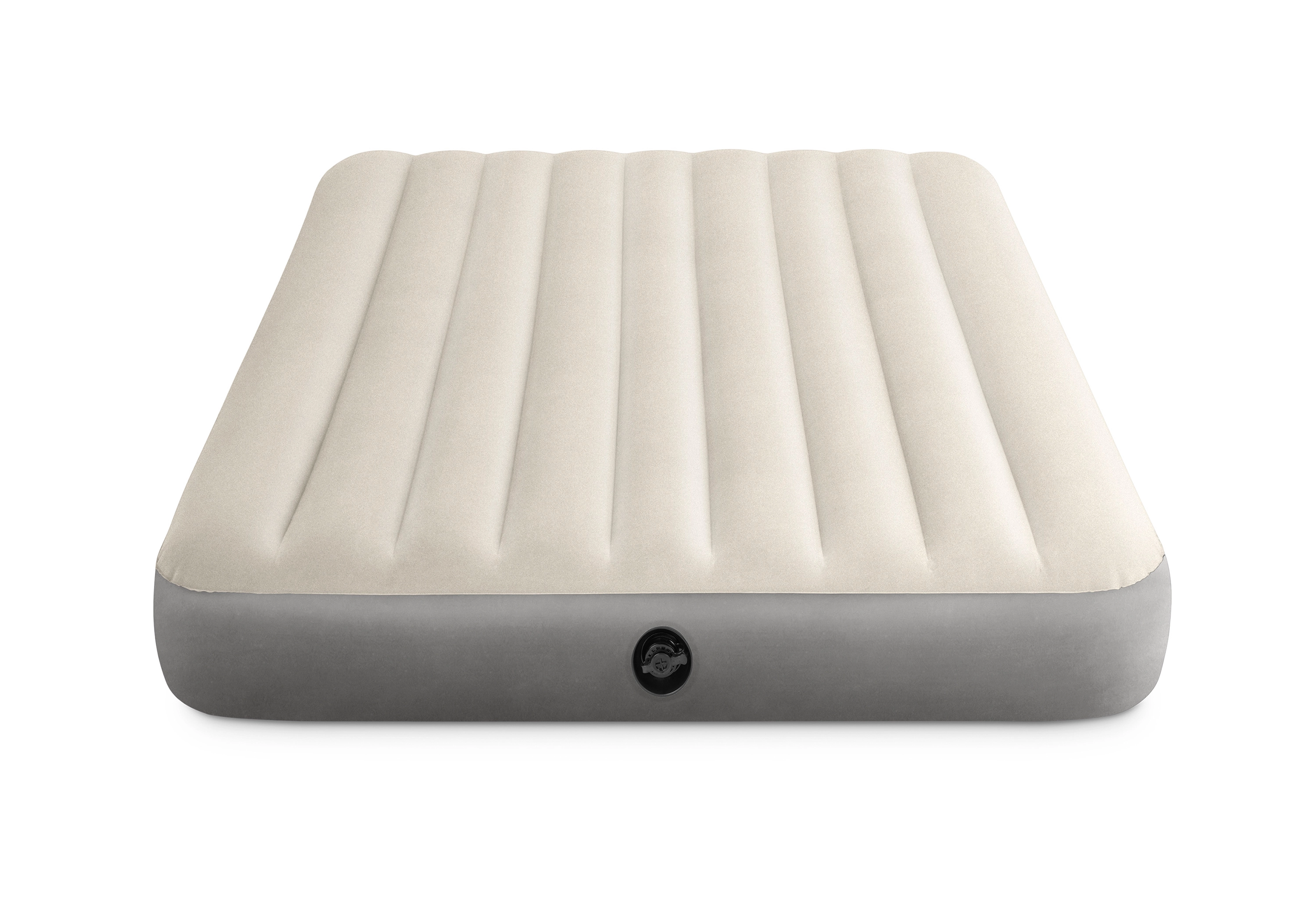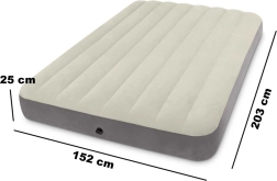 Dvigulis pripučiamas INTEX čiužinys, kurio matmenys 203 × 152 × 25 cm, puikiai tinka namams ir stovyklavimui. Jis turi malonų velūrinį paviršių, greitą Boston vožtuvą patogiam pripūtimui ir išleidimui bei vidinę Dura-Beam Fiber technologiją geresnei kūno atramai. Komplekte yra remonto lopas.
