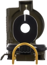 Nuslenkamas dangtelis su taikymo plyšiu, plona taikymo gija ir maža lupa po ieškikliu užtikrina tikslius kampų nuskaitymus ir patikimą maršruto vedimą.
