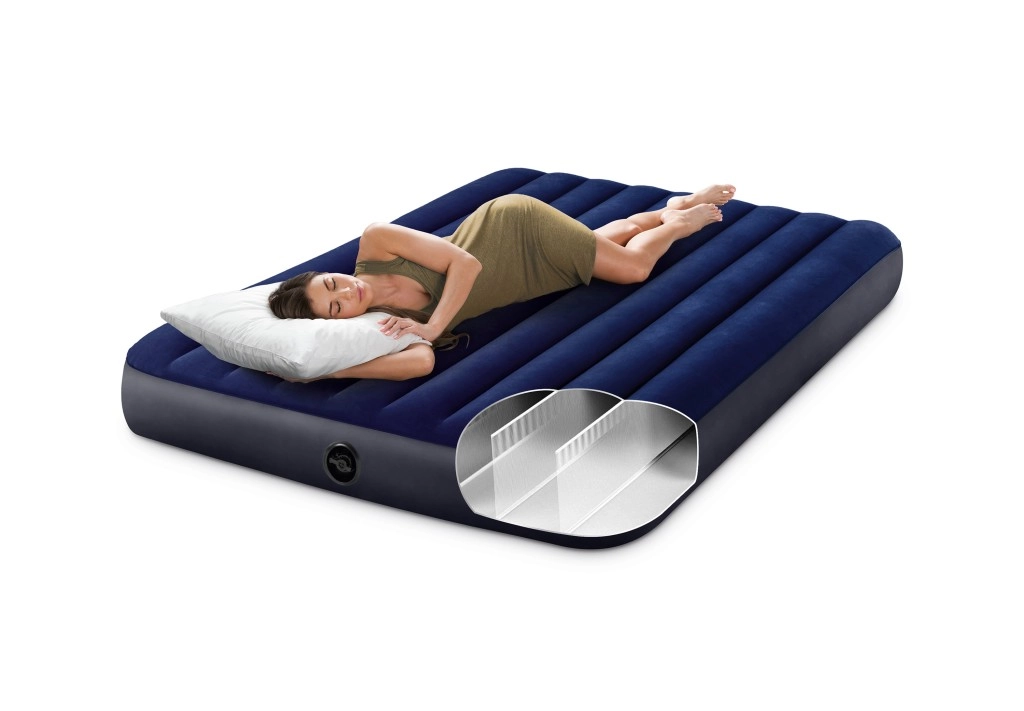 Mėgaukitės patogiu poilsiu ant dvigulio INTEX čiužinio su maloniu flockuotu (veliūriniu) paviršiumi, kuris yra minkštas liesti ir padeda paklodei likti vietoje. Čiužinys pagamintas iš patvaraus PVC, o jo matmenys puikiai tinka svečiams, kemperiams ir stovyklavimui.