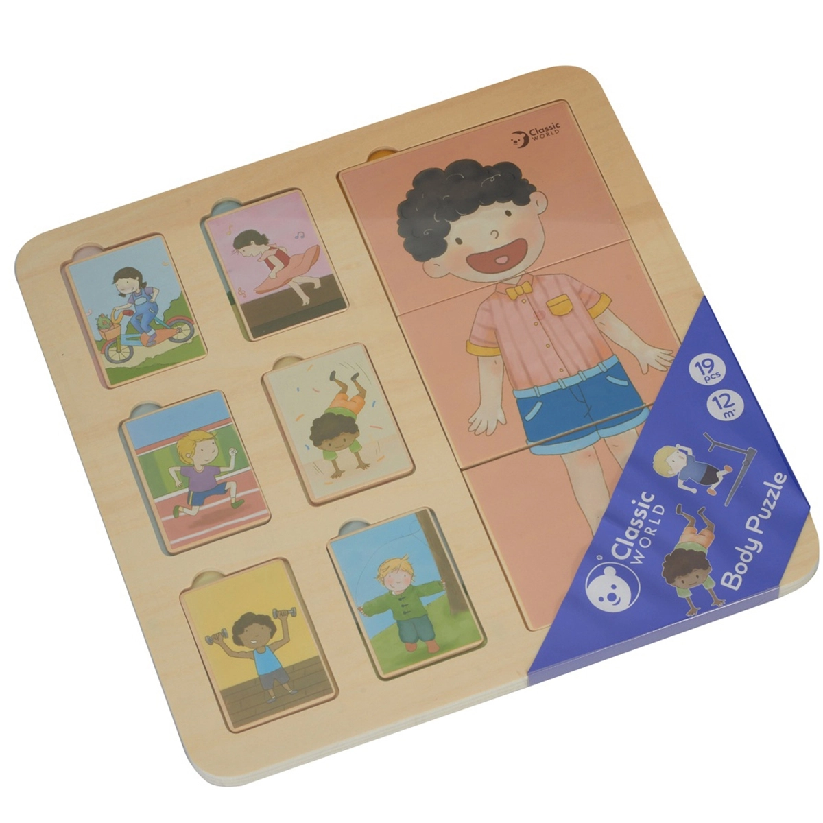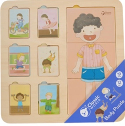 Classic World medinė žmogaus kūno dėlionė yra idealus žaislas vaikams nuo 12 mėnesių. Ji susideda iš lentos ir 18 spalvotų detalių, vaizduojančių vaikus įvairiose veiklose. Vaikai turi sudėti detales į tinkamas vietas, kad susidarytų pilnas paveikslas.