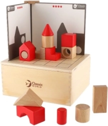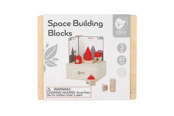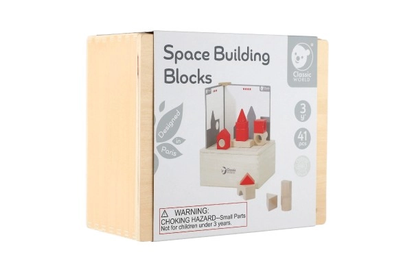 Su šiuo gražiu mediniu konstruktoriu vaikai gali žadinti vaizduotę ir loginį mąstymą. Space Building Blocks sudaro 41 įvairus elementas ir 14 kortelių, kurios kūrybiškam žaidimui suteikia naują dimensiją. Kiekvienas kortelių lygis skiriasi sudėtingumu, todėl leidžia palaipsniui tobulinti įgūdžius.
