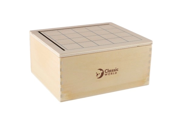Rinkinys sukurtas vaikams nuo 3 metų, o visi elementai saugiai laikomi medinėje dėžutėje, kurios matmenys 18,5 x 16 x 9 cm. Vaikai gali bandyti dėlioti kaladėles pagal korteles ir suderinti abi puses, taip lavindami logiką ir miklumą.