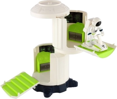 Leiskitės į nuotykius kosmose su šia kosmine stotimi su šviesomis ir garsais, kuri siūlo dvi valdymo patalpas, judančius elementus ir astronautą aktyviam žaidimui. Dėl kosminės pasivaikščiojimo virvės, stovėjimo vietos sklandytuvui ir galimybės „įkrauti“ transporto priemonę iš kito rinkinio, vaikai mėgausis valandomis kūrybiško žaidimo. Į komplektą įeina 2× AA baterijos.