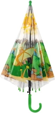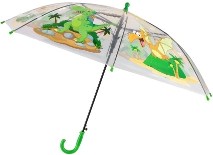 Linksmų dinozaurų motyvais dekoruotas vaikiškas skaidrus skėtis pavers lietingas dienas pramoga. Dėl automatinio atidarymo, lengvos konstrukcijos ir patogios žalios rankenos juo lengva naudotis, jis puikiai tinka vaiko rankai.
