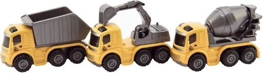 Smagūs plastikiniai statybiniai žaisliniai automobiliai su inercine pavara pradžiugins kiekvieną mažą statytoją. Pakuotėje rasite 3 skirtingas rūšis transporto priemonių, kurių dydis apie 10 cm, kurios po įtempimo greitai pajuda. Idealu kaip originali dovana vaikams nuo 3 metų.