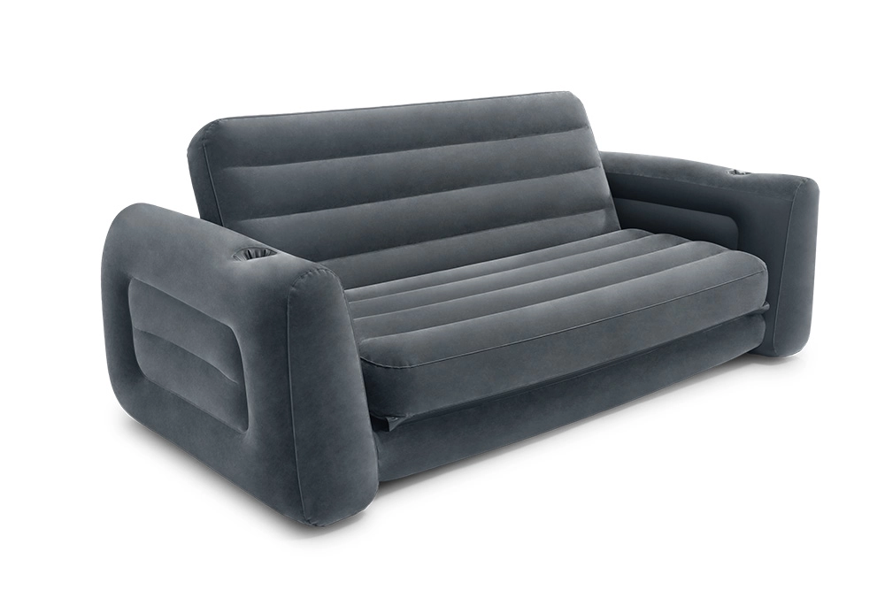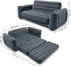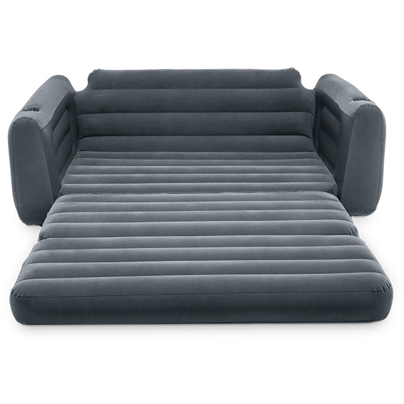 Velūrinė Intex sofa, kurios matmenys 231x203x66 cm, idealiai tinka dviem asmenims. Pagaminta iš patvarios PVC medžiagos, padengta švelniu velūru, lengvai išleidžiama.