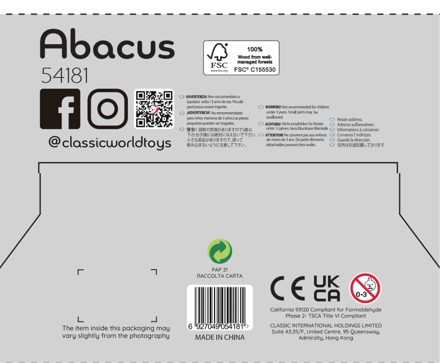 Classic World medinis skaitliukas – tai išskirtinė mokymosi priemonė, kuri daro mokymąsi malonesnį. Mokykitės žaisdami su šiuo ekologišku žaislu, išsiskiriančiu gražiomis spalvomis ir kokybišku atlikimu. Idealiai tinka darželiams, mokykloms ir individualiam mokymuisi.