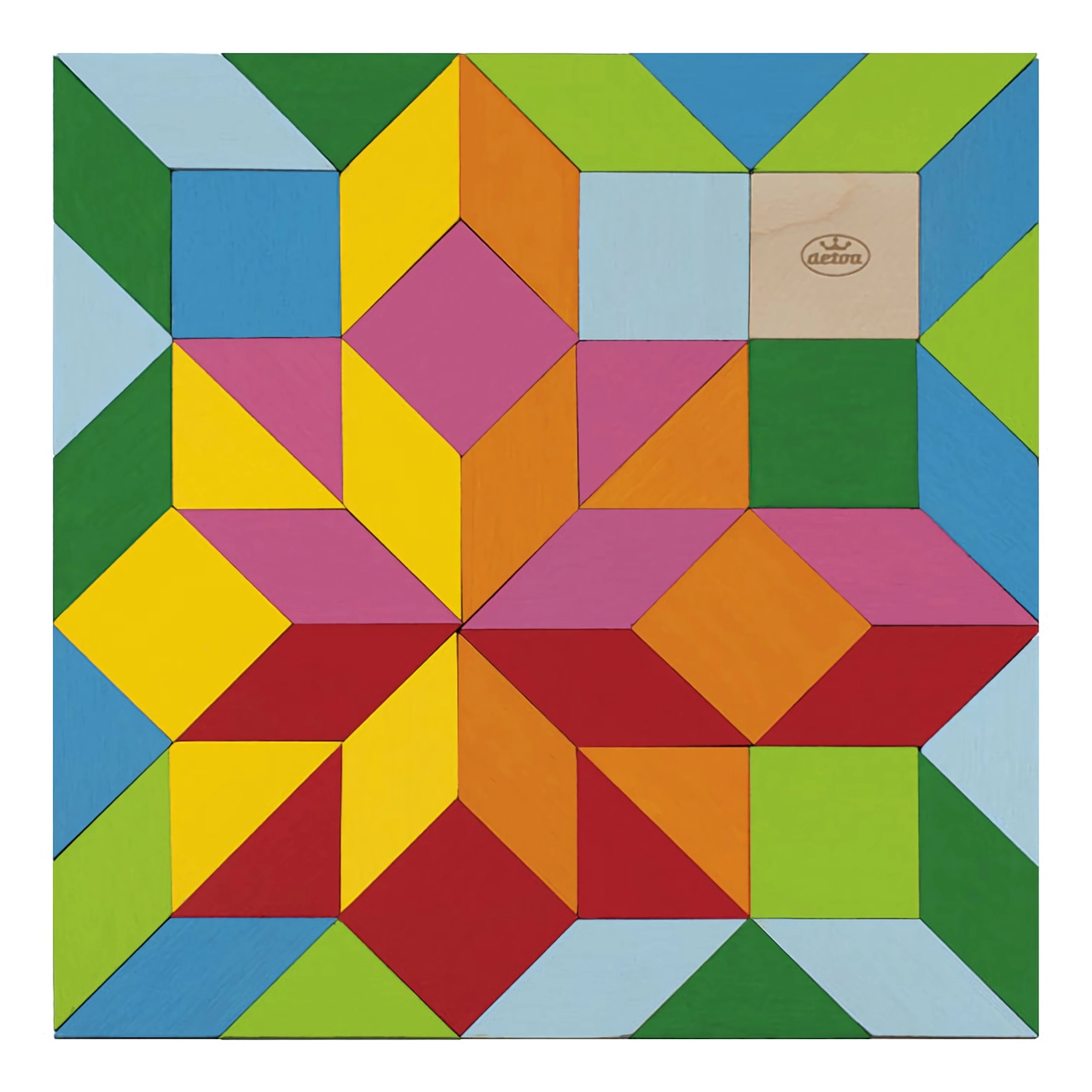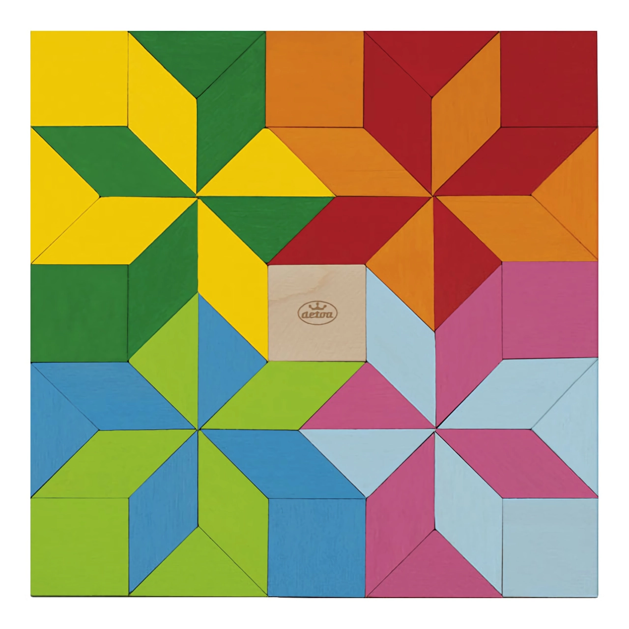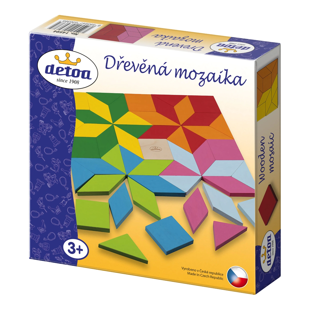 Detoa mozaika – klasikinis didaktinis žaidimas iš patvaraus medžio. Vaikai dėlioja spalvotus kaladėlius į nesuskaičiuojamus raštus, lavina akies–rankenos koordinaciją, atranda formas, spalvas ir paprastus geometrinius santykius. Žaidimas ugdo susikaupimą ir kantrybę, kartu teikia kūrybos džiaugsmą.
