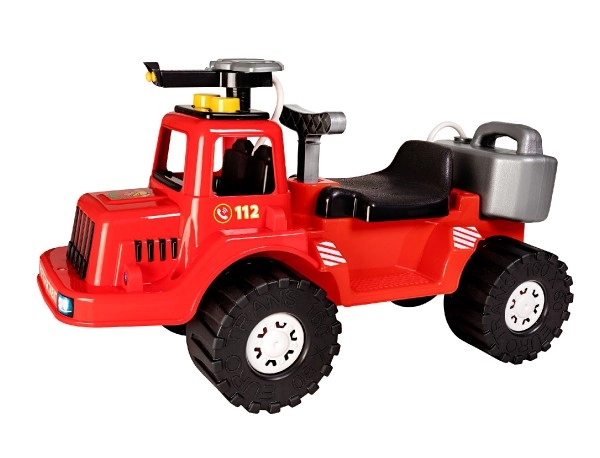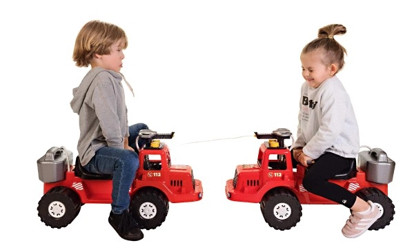 Dėl žemo svorio centro, plačių ratų ir ergonomiškos rankenos važiavimas stabilus ir patogus. Pasispiriamas žaislas padeda lavinti stambiąją motoriką, koordinaciją ir vaiko pasitikėjimą savimi. Realistinės detalės, numeris 112 ir „FIRE DEPARTMENT“ užrašai pabrėžia autentišką išvaizdą.