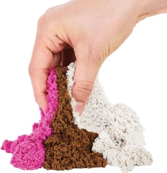 Speciali Kinetic Sand sudėtis lengvai spaudžiasi, pjaustoma ir formuojama – idealiai tinka realistiniams ledų kaušeliams ir desertams.