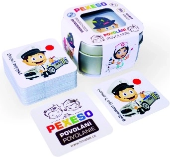 Atraskite linksmą ir edukacinį atsparų vandeniui pexeso su profesijų motyvais praktiškoje skardinėje dėžutėje. Rinkinyje 64 kortelės: 32 su čekų ir slovakų pavadinimais ir 32 su angliškais pavadinimais ir tarimu. Iš kokybiško kortų kartono, padengto specialiu laku, pagamintos kortelės atlaiko ilgas žaidimo valandas. Tinka nuo 3 metų ir gali būti derinamas su rinkiniu Profesijos 2 iki 128 kortelių.