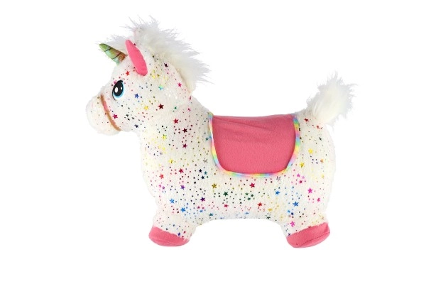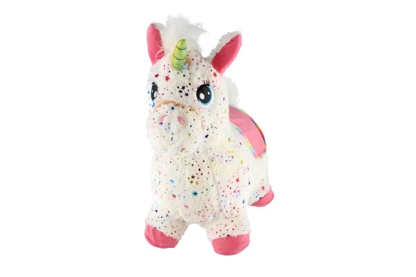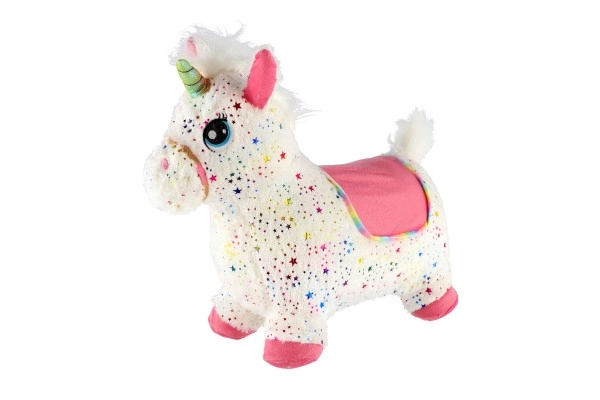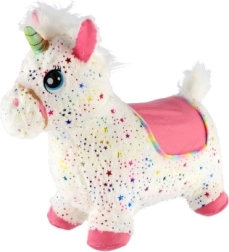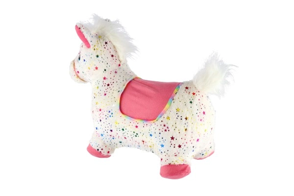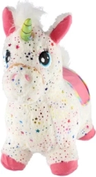 Pliušinis šokinėjantis vienaragis su garsu, baltas su žvaigždutėmis