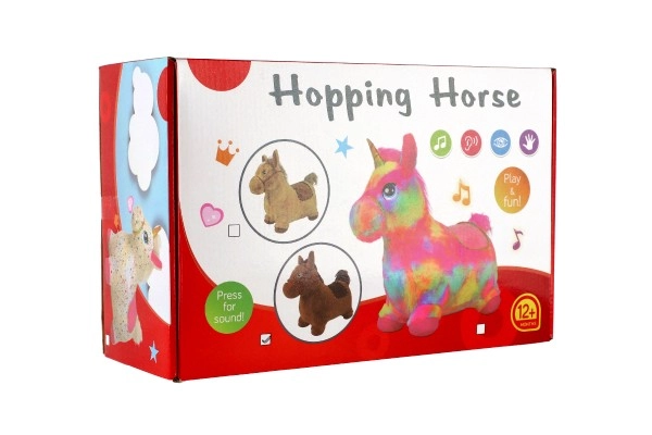Mielas plišinis šokinėjantis vienaragis pradžiugins mažiausius vaikus nuo 12 mėnesių. Dėl ergonomiškos formos, 23 cm sėdynės aukščio ir minkšto nuimamo užvalkalo šokinėti yra saugu ir patogu. Paspaudus mygtuką, vienaragis leidžia linksmus garsus, komplekte taip pat yra pompa ir baterijos akimirksniu pramogai.
