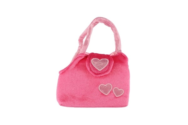 Žavus rinkinys mažosioms stileivoms: minkštutis pliušinis šuniukas, paslėptas rožinėje rankinėje su dekoratyvinėmis širdelėmis. Puikiai tinka kelionėms, vaidybiniams mamytės žaidimams ir glostymui – šuniuką bet kada galima išimti iš rankinės.