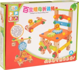 Šis kokybiškas medinis rinkinys leidžia vaikams surinkti dirbtuvių kėdutę ir kitus originalius modelius. Naudodami varžtus, veržles ir krumpliaračius, vaikai tyrinėja paprastos mechanikos principus, lavina susikaupimą ir miklumą. Kėdutė stabili, o apgalvota skylių ir jungčių sistema suteikia daug derinių galimybių.