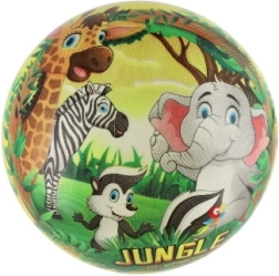 Kamuolys turi linksmą dizainą su džiunglių motyvu, kuriame pavaizduoti piešti gyvūnai, tokie kaip dramblys, žirafa ir zebra.