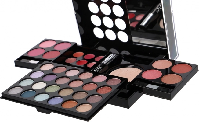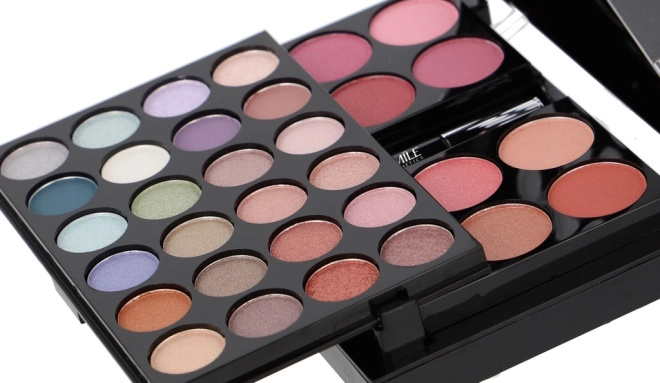 - 24× akių šešėliai, 8× skaistalai, 6× kreminis lūpų blizgesys, 1× pudra, 1× blakstienų tušas, 1× 4 aplikatorių/teptukų rinkinys, integruotas veidrodėlis
