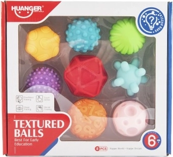 Šis tekstūruotų kamuoliukų rinkinys idealiai tinka vaikams nuo šešių mėnesių. Jie pagaminti iš silikono, kuris malonus liesti ir leidžia lengvai suimti. Įvairios kamuoliukų paviršiaus tekstūros skatina sensorinį suvokimą.