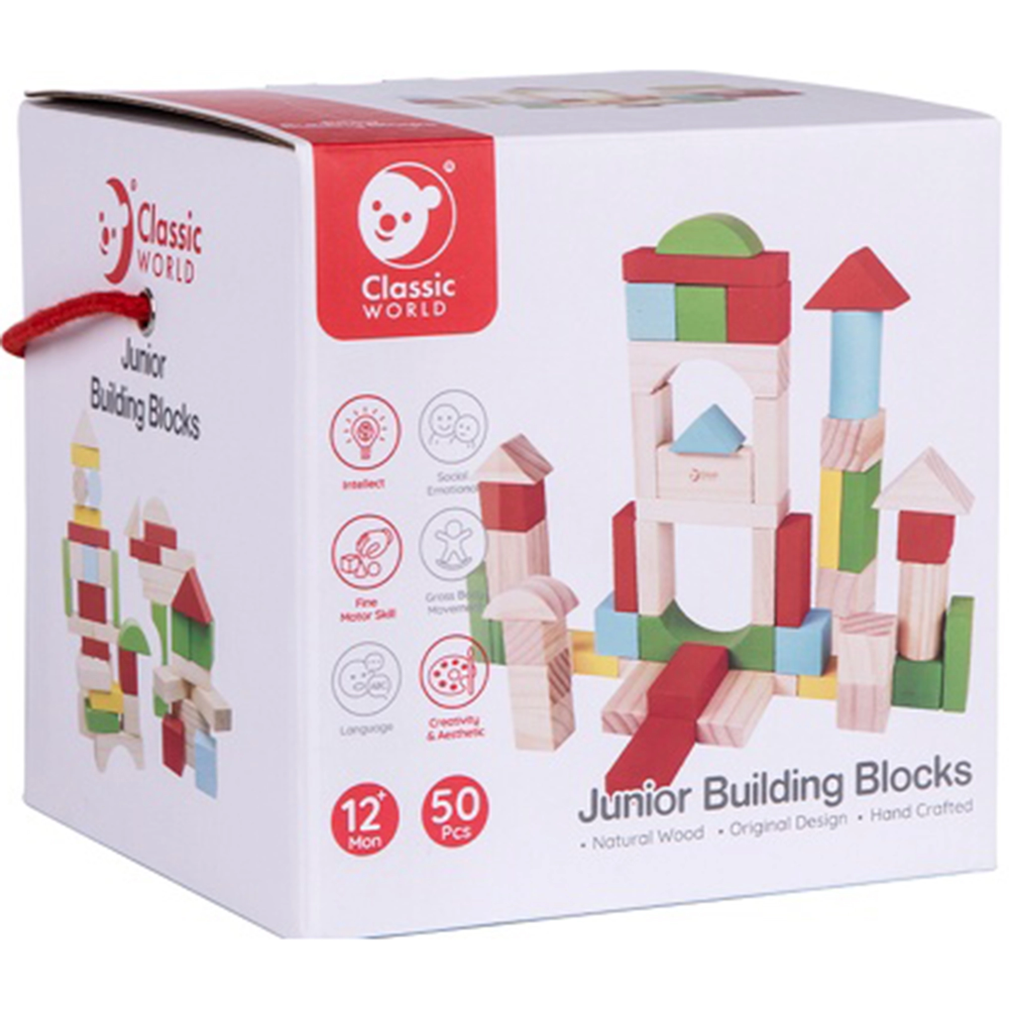 Classic World medinės kaladėlės vaikams – idealus rinkinys mažiesiems statytojams. Šiame rinkinyje yra 50 spalvotų kaladėlių, kurios skatina smulkiosios motorikos, erdvinio mąstymo ir kūrybiškumo raidą.