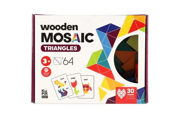 Pasinerkite į kūrybos pasaulį su medine trikampių mozaika, pritaikyta vaikams nuo 3 metų. Dėliodami įvairius raštus iš 64 detalių, vaikai mokosi atpažinti spalvas ir formas, lavina loginį mąstymą bei smulkiąją motoriką. Žaislas siūlo 30 užduočių su skirtingais sudėtingumo lygiais, todėl mažiesiems statytojams niekada nebus nuobodu.