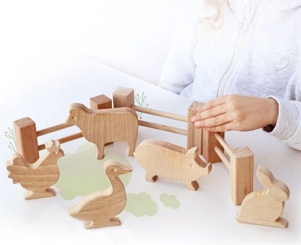 Medinė ferma TEDDIES – konstruktorius vaikams nuo 3 metų