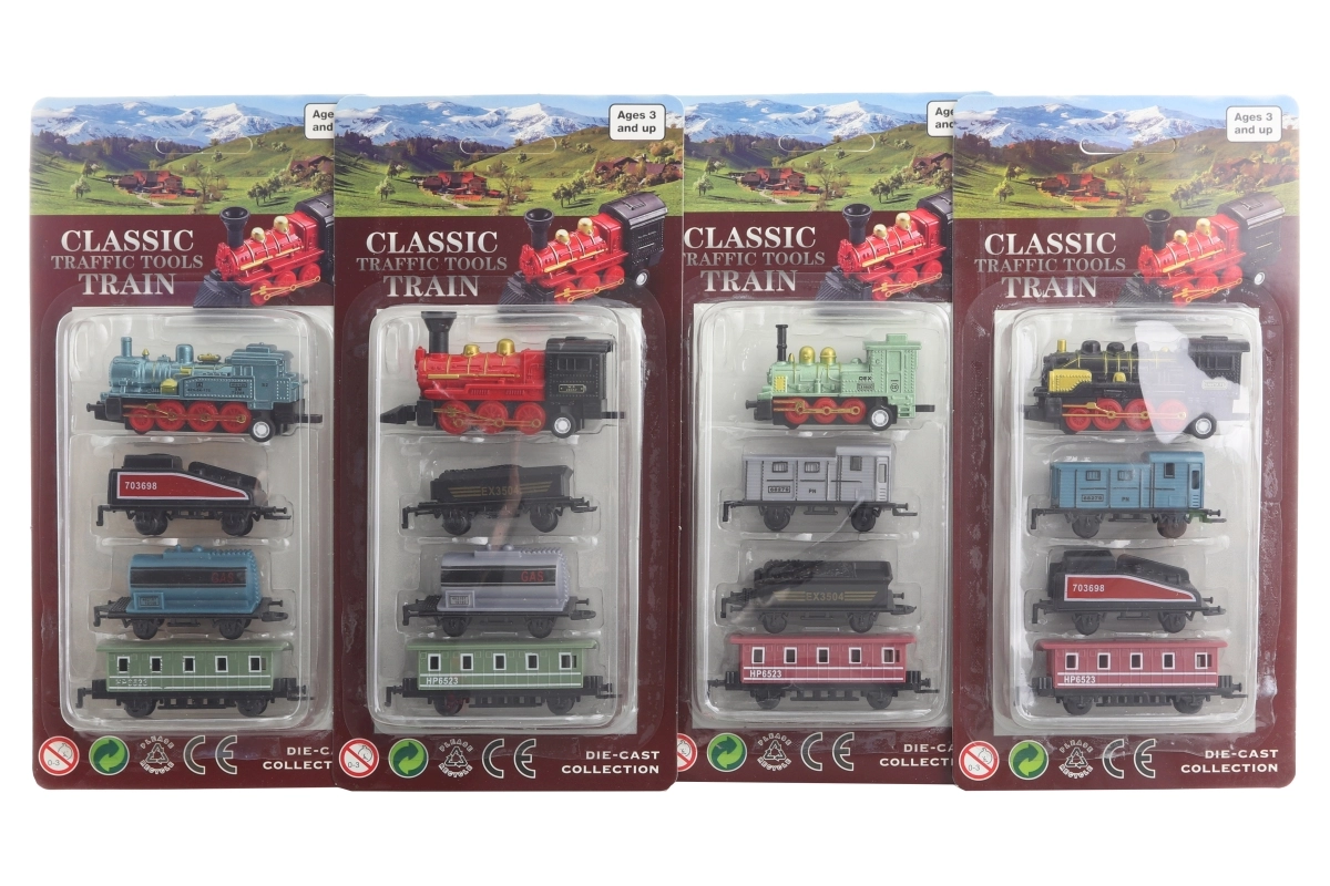 Atraskite bėgių pramogas su stilingu metalinių traukinukų rinkiniu vaikams nuo 3 metų. Rinkinyje yra lokomotyvas ir 3 vagonėliai, kurie džiugina detaliu atlikimu ir patvaria metaline konstrukcija – idealiai tinka mažiesiems traukinių gerbėjams.