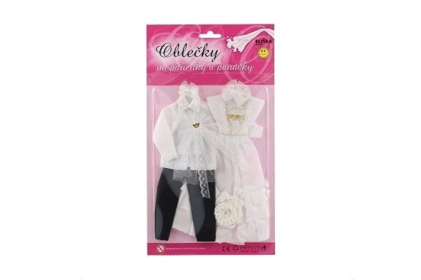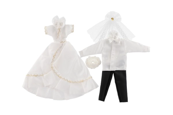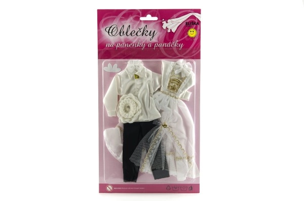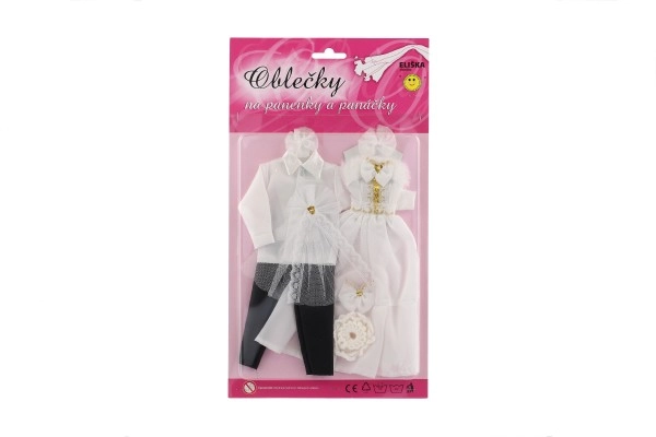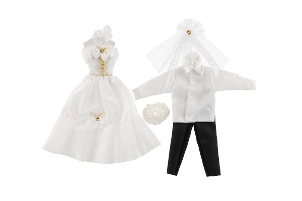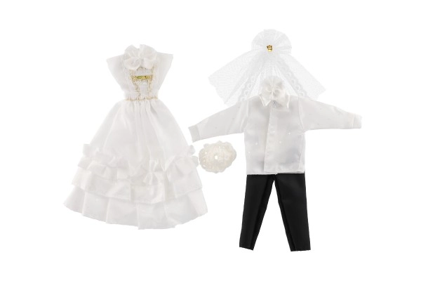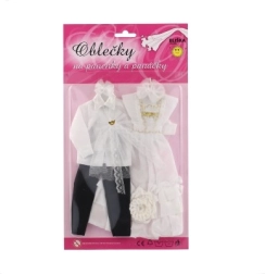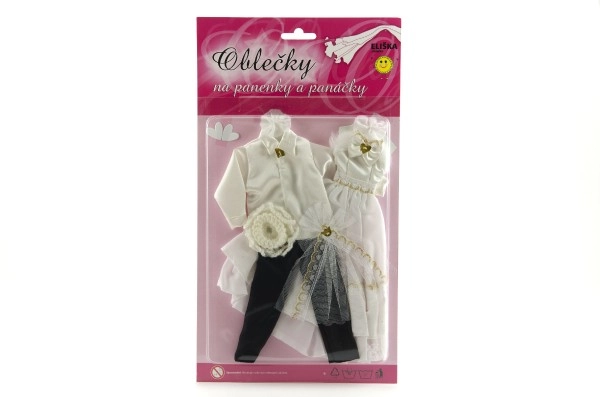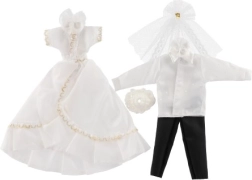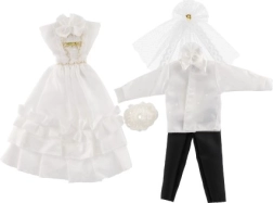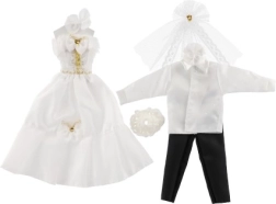 Su šiuo išskirtiniu vestuvinių drabužių rinkiniu jūsų lėlės gali tapti kiekvienų įsivaizduojamų vestuvių žvaigždėmis! Apranga apima detaliai ištobulintą suknelę ir elegantišką kostiumą, kurie suteiks jūsų vestuvių istorijai žavesio ir spindesio.