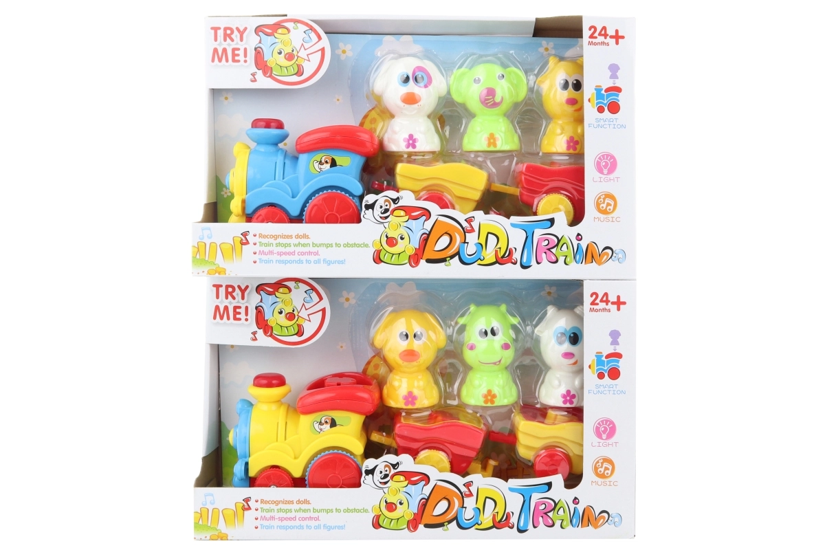 Šis spalvingas vaikiškas traukinukas su gyvūnėliais yra idealus mažiesiems tyrinėtojams. Važiuoja, signalizuoja, groja, o gyvūnėliai juda važiuojant. Paspaudus vieną iš gyvūnėlių galima keisti traukinuko greitį.