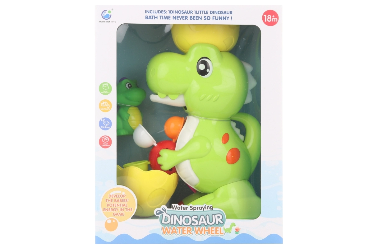 Paįvairinkite vaikų maudynes su šiuo linksmu vandens malūnėliu dinozauro formos. Dėka siurbtukų jį lengvai pritvirtinsite prie vonios sienelės ar plytelių, o vanduo suka sparnelius, sukeldamas linksmus vandens žaidimus. Idealu vaikams nuo 18 mėnesių, dinozauro matmenys apie 15 × 24 × 8 cm, su praktišku tvirtinimu ant lygaus paviršiaus.
