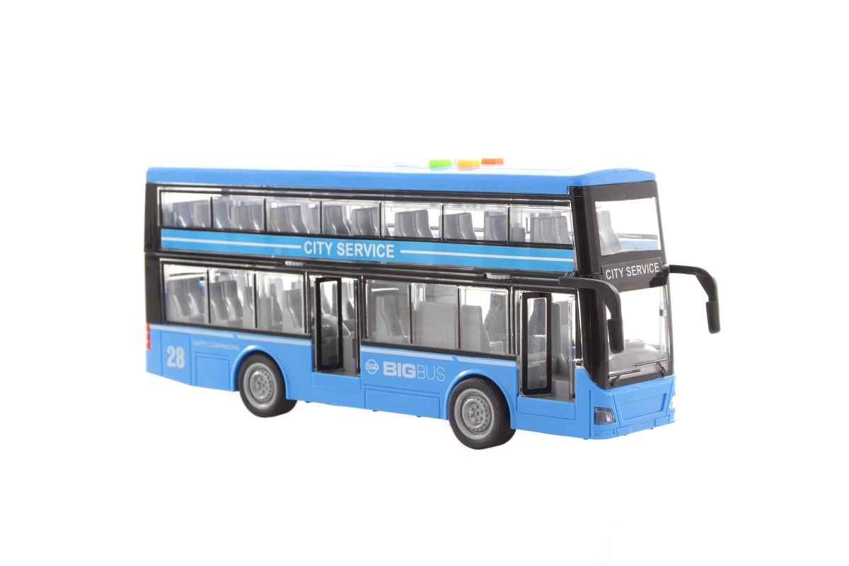 Šis mėlynas dviaukštis autobusas su baterijomis pradžiugins visus mažus transporto priemonių gerbėjus. Dėl realistiškų garsų žaidimas tampa dar smagesnis ir skatina vaizduotę. Tvirtas plastikinis korpusas puikiai tinka kasdieniams žaidimams.