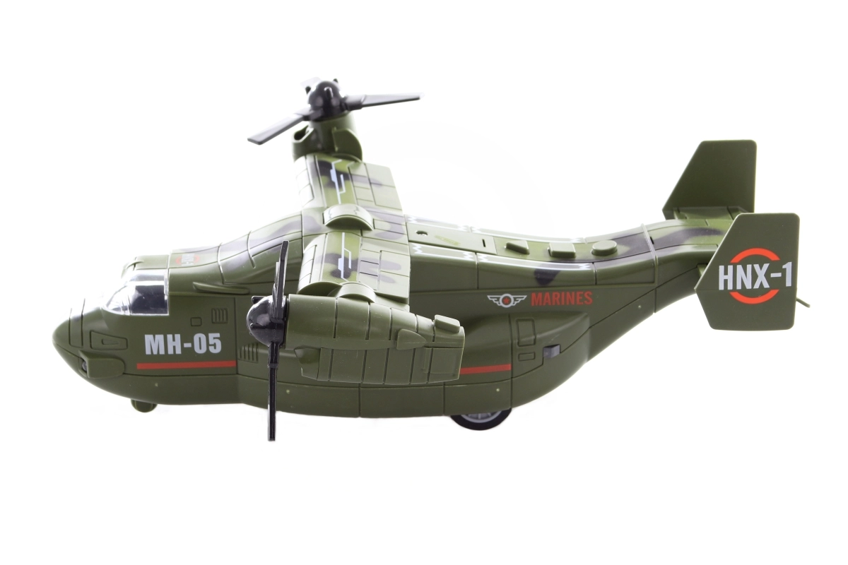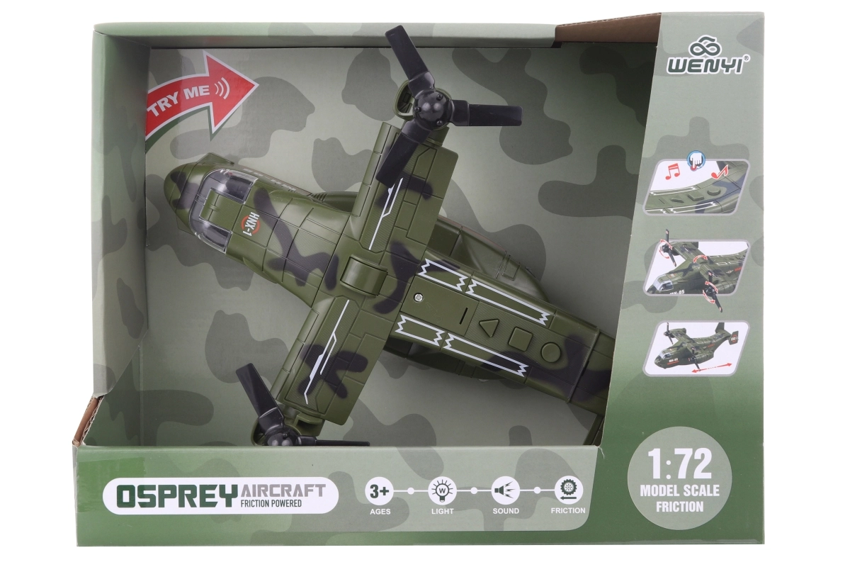 Šis plastikinis karinis lėktuvas – puikus pasirinkimas vaikams, mėgstantiems karinę techniką ir veiksmo istorijas. Paspaudus mygtukus įsijungia garso ir šviesos efektai, kurie skatina vaizduotę ir įtraukia į žaidimą. Dėl patvarios konstrukcijos tinka kasdieniam naudojimui.