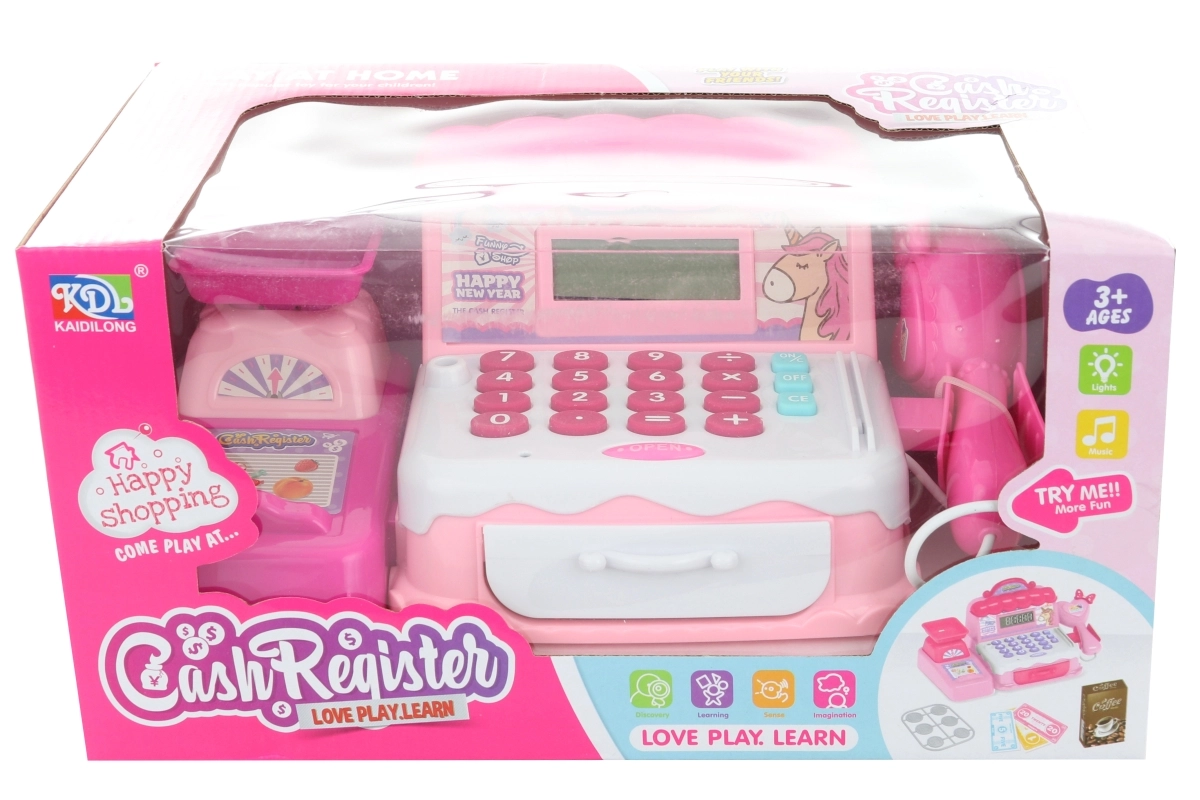 Linksma rožinė kasa su vienaragiu pavers kiekvieną vaikų kampelį maža parduotuve. Vaikai gali „skenuoti prekes“, sverti, skaičiuoti ir saugiai laikyti uždirbtus pinigėlius stalčiuje. Tikroviški garsai, šviesos ir ekranas suteikia žaidimui autentiškumo ir padeda natūraliai mokytis skaičių bei paprasto skaičiavimo.