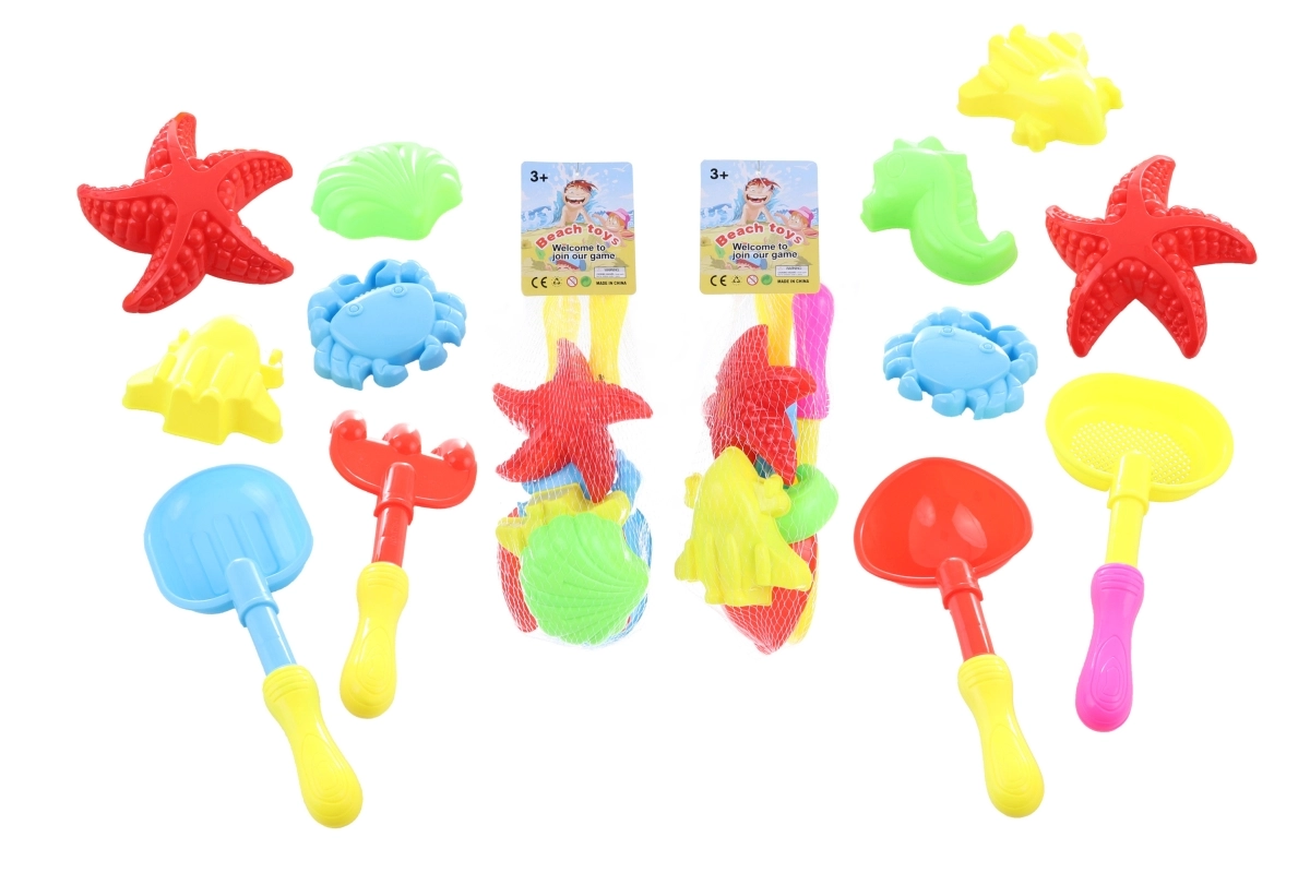Linksmas smėlio rinkinys mažiesiems statytojams: grėbliukai/sietelis, kastuvėlis ir 4 formelės. Patogiai supakuota į tinklelį, kad būtų lengva nešiotis. Puikiai tinka žaidimų aikštelei ir paplūdimiui, skirta nuo 3 metų.