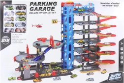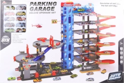 Atraskite pramogas per šešis aukštus su šiuo didelio plastiko garažu su sraigtasparnių aikštele. Rinkinyje yra 10 mašinėlių, kurių ilgis apie 6,5 cm, liftai ir rampos sklandžiam važiavimui, taip pat nusileidimo aikštelė sraigtasparniui. Puikus pasirinkimas vaizduotei ir smulkiajai motorikai ugdyti vaikams nuo 3 metų.