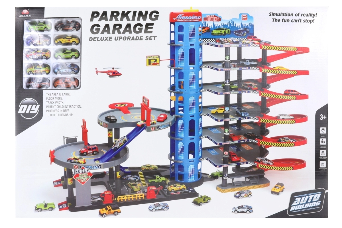 Šis erdvus daugiaaukštis garažas suteiks vaikams valandas kūrybiško žaidimo. Šešis aukštus jungia rampos ir išvažiavimai, dėl kurių mašinėlės gali lenktyniauti, parkuotis ir saugiai leistis tarp lygių. Sraigtasparnių aikštelė ant stogo suteikia žaidimui naują dimensiją ir skatina miesto aplinkos istorijas.