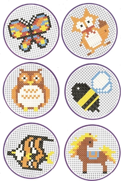 - 1× plastikinė lentelė, 1× popierinė schema, 1× adata, įvairiaspalviai siūlai