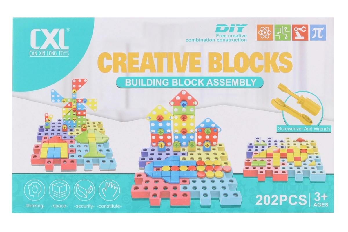 Universali varžtais sujungiama konstruktorių rinkinio vaikams nuo 3 metų lavina smulkiąją motoriką, kūrybiškumą ir loginį mąstymą. Rinkinyje yra 202 plastikinės detalės, iš kurių vaikai gali pastatyti miestą, transporto priemones ir savitus originalius modelius. Paprastas varžtelių sukimas yra smagus ir saugus, skatina neribotą kūrybinį žaidimą.