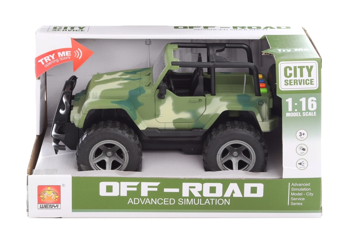 Šis baterijomis veikiantis džipas yra ideali dovana mažiesiems veiksmo mėgėjams. Dėl realistiškų garsų ir tvirto plastikinio korpuso jis atlaiko kasdienius nuotykius namuose ir kelionėse. Kompaktiškas dydis palengvina valdymą mažoms rankytėms.