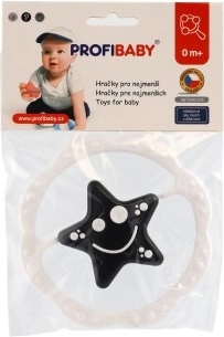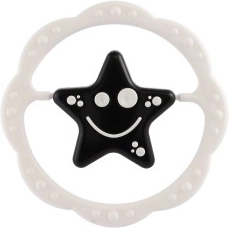 Faktūruoti kraštai veikia kaip švelnus kramtukas, ramina sudirgusias dantenas. Kontrastinis žvaigždės/gėlės motyvas centre patraukia net labai mažų vaikų dėmesį, kurie dar tik mokosi fokusuoti žvilgsnį. Žaislas pagamintas iš kokybiško plastiko ir tinka kasdieniam naudojimui namuose ir kelionėse.