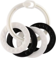 Šis juodai baltas žiedų rinkinys sukurtas patiems mažiausiems. Kontrastinės spalvos patraukia dėmesį, padeda lavinti susikaupimą ir palaiko sveiką regos vystymąsi. Skirtingos formos ir paviršiai padeda vaikui lavinti smulkiąją motoriką ir akių–rankų koordinaciją.